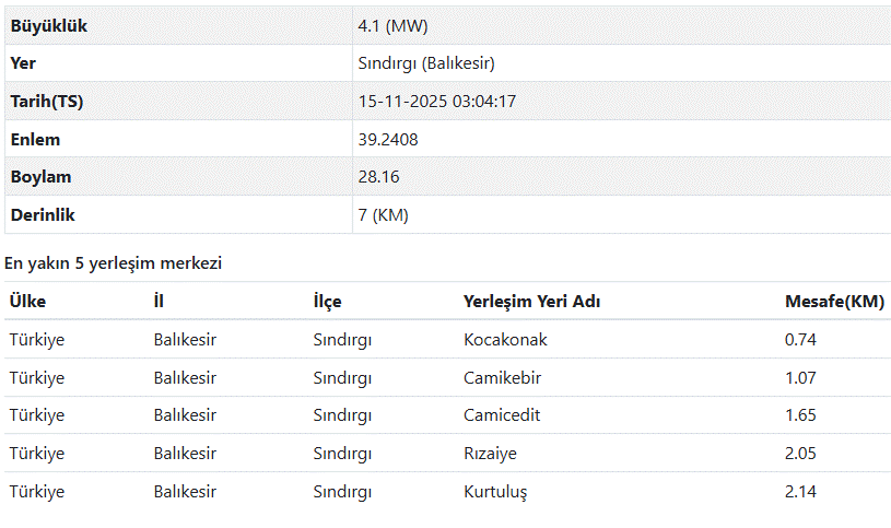 SON DAKİKA BALIKESİR DEPREM VERİLERİ