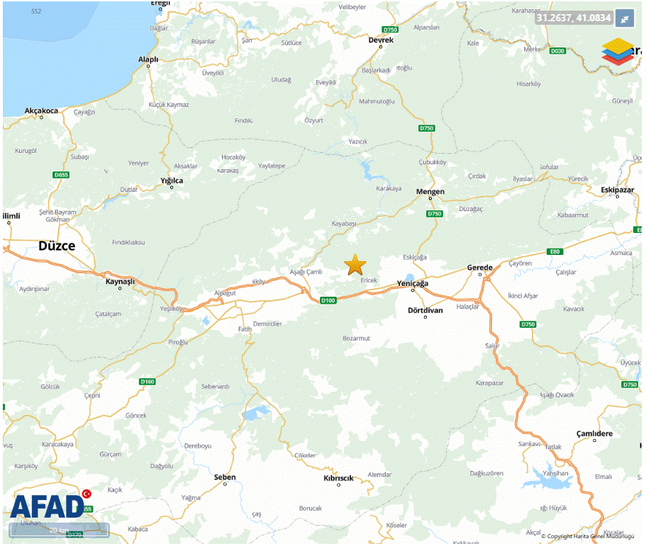 Bolu depreminin merkez üssünün aşağıda işaretli bölge olduğu açıklandı.