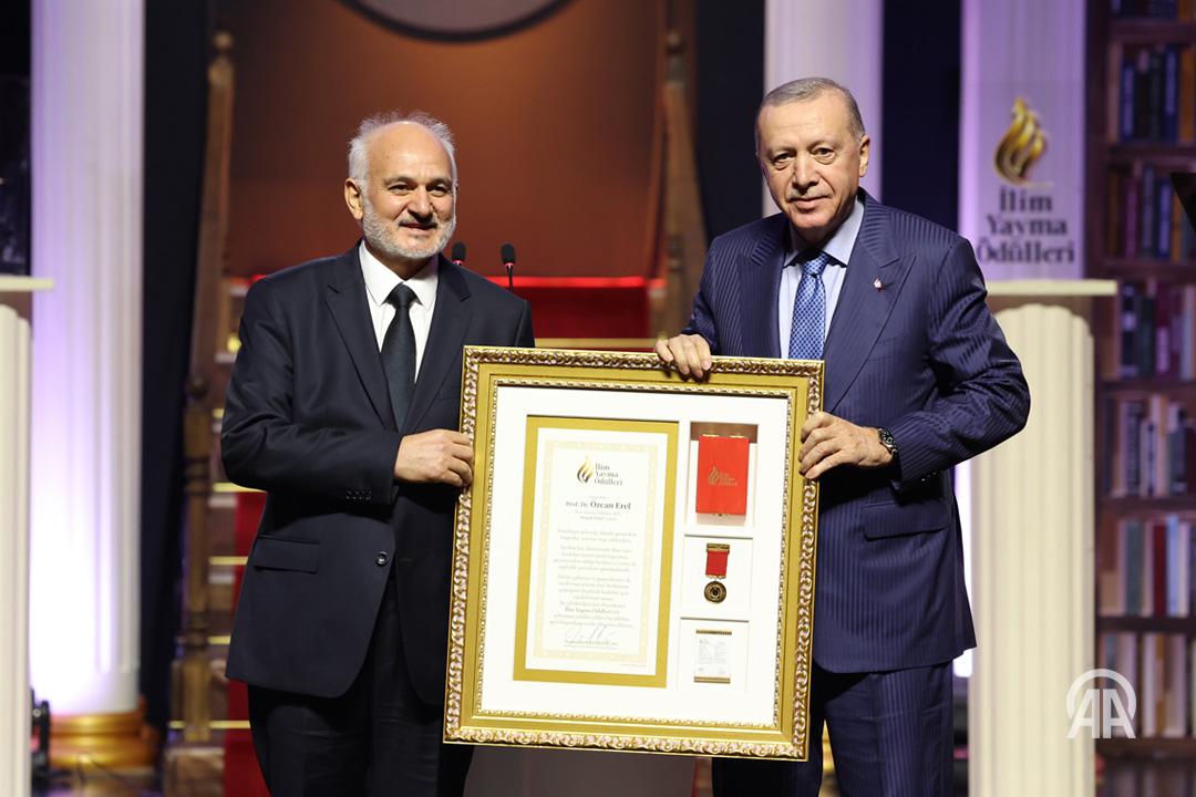 Büyük Ödül: Kolorimetrik TOS yöntemi ve ölçüm kiti geliştirmesi dolayısıyla Ankara Yıldırım Beyazıt Üniversitesi'nden Prof. Dr. Özcan Erel. (Ödülü Cumhurbaşkanı Erdoğan takdim etti.)