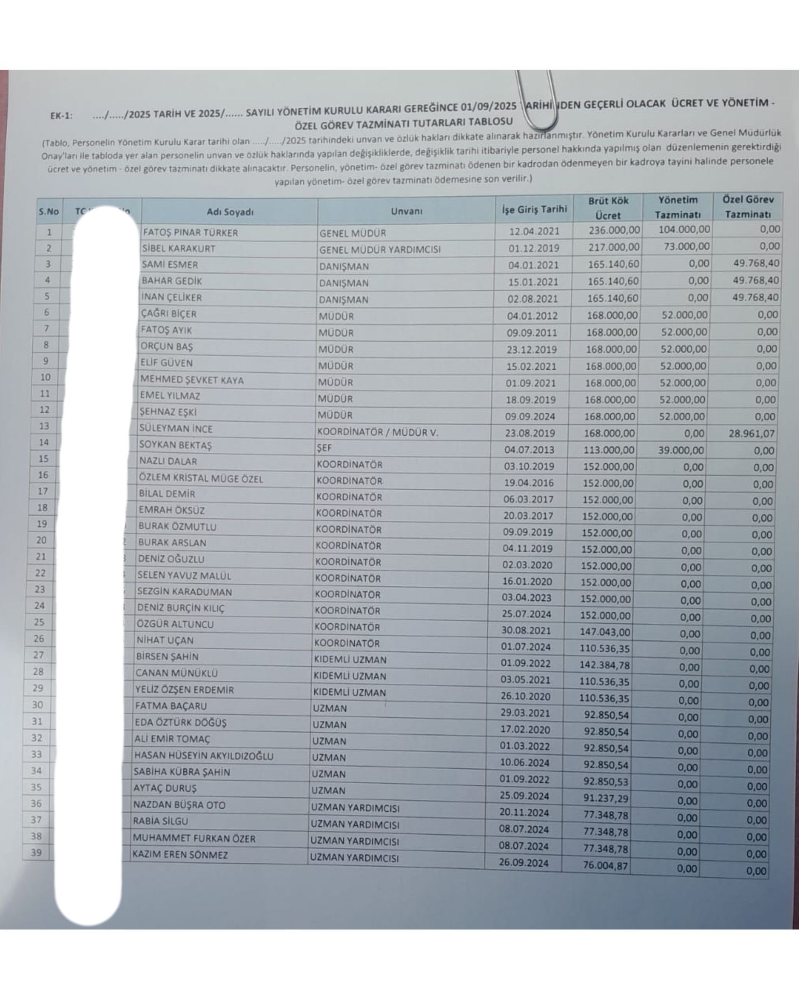 Kamuoyuna sızan bilgilere göre, kurum içindeki hiyerarşiye bağlı olarak belirlenen 2025 yılı brüt maaş listesi şu şekildedir:
